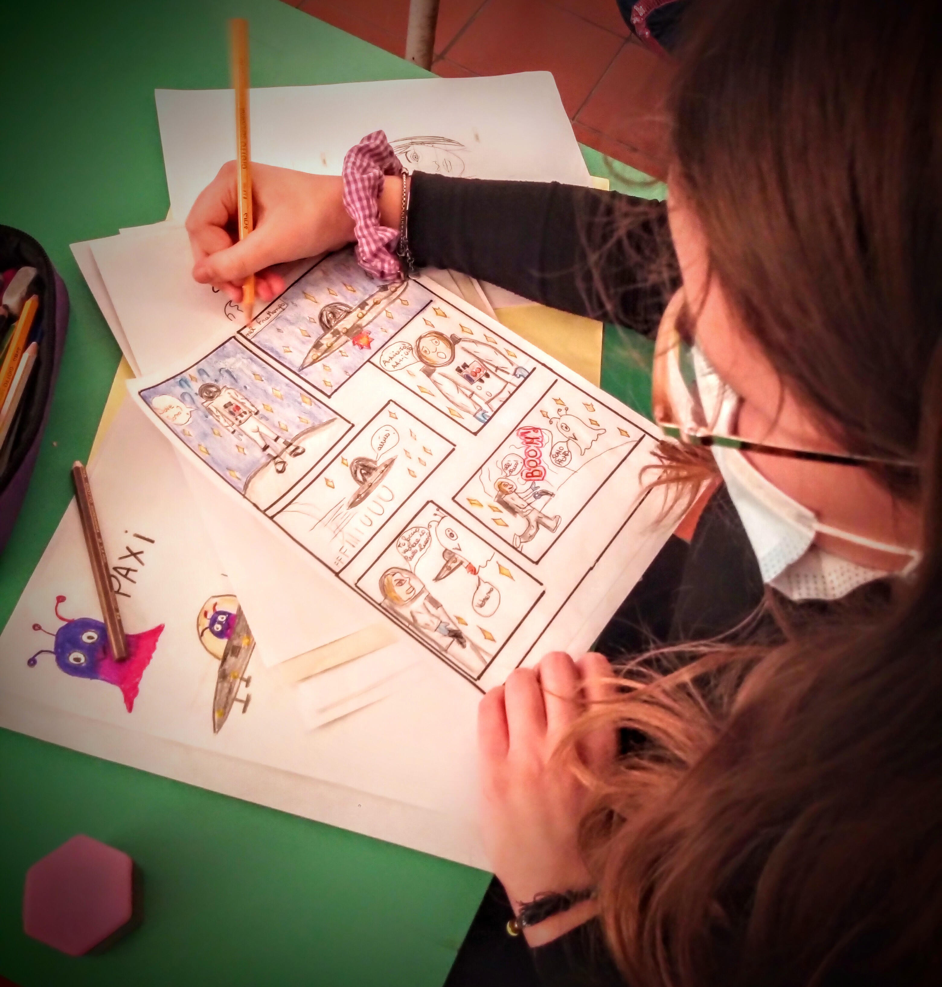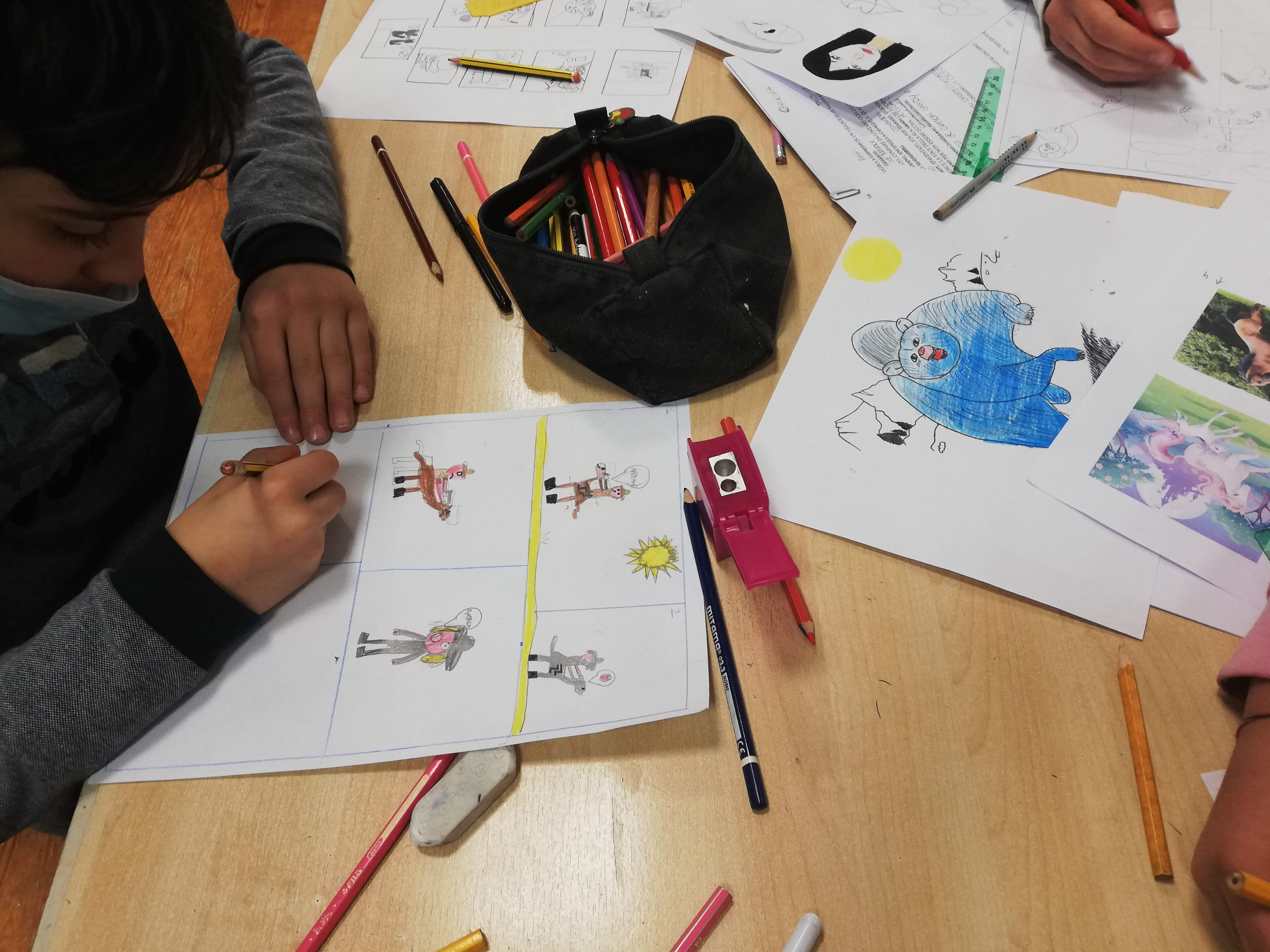 Più avanti, i quaderni di scuola e i banchi sono i supporti su cui sfogare la sua fantasia: straripano di donne, visi, sguardi, caricature, nonché di pupini stilizzati che giudicano dai loro balloon le prime cotte e i votacci.
